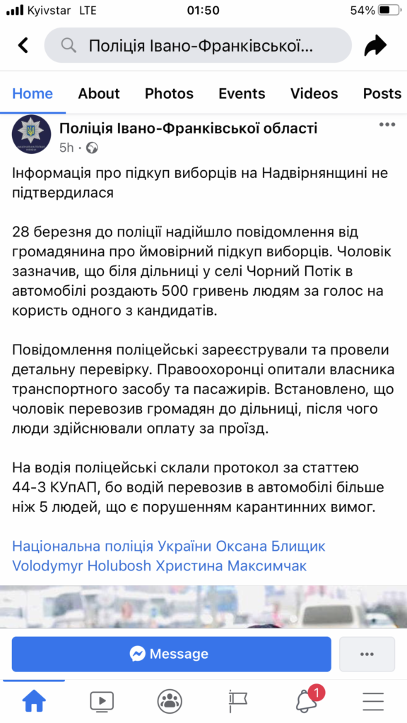 Інформація про підкуп виборців на Надвірнянщині не підтвердилася.