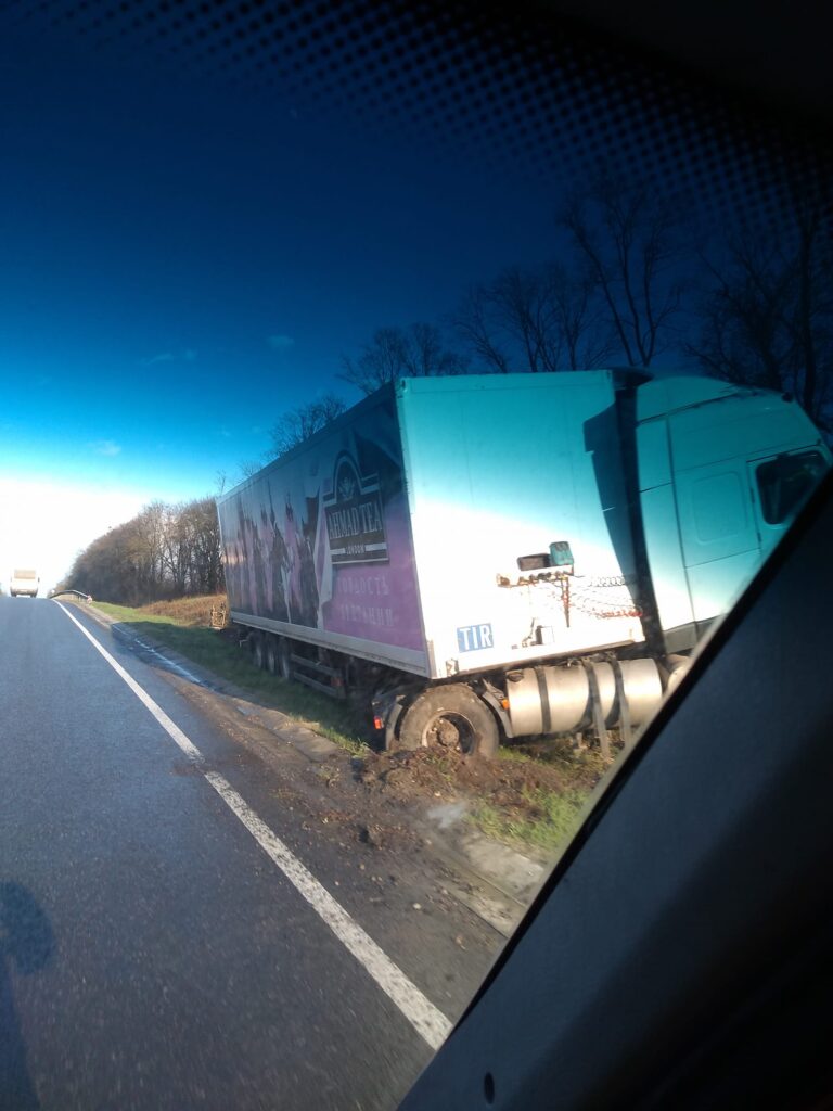 На автомобільній дорозі Львів – Золочів вантажний автомобіль злетів у кювет.