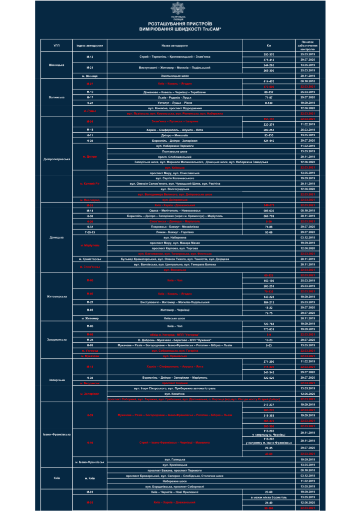 “З 22 березня патрульні з приладом TruCAM працюватимуть ще на 60 нових ділянках. Також ми вносимо зміни до 12 вже існуючих ділянок”, – йдеться в повідомленні.