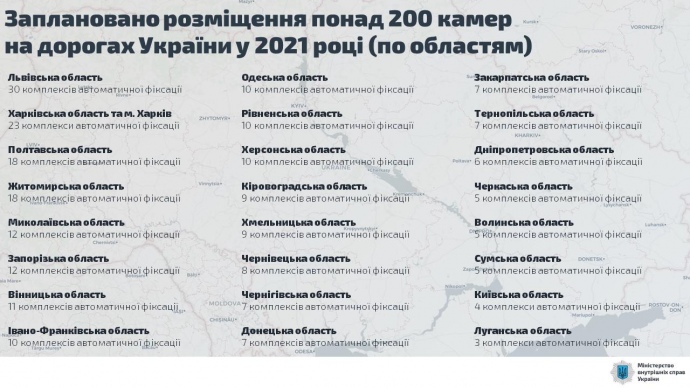 Міністр також виклав інфографіку, яка уточнює, де саме будуть встановлюватися ці камери.