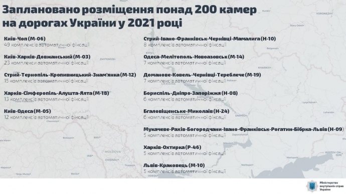 У 2021 році на дорогах України встановлять ще 220 стаціонарних камер фотовідеофіксації.