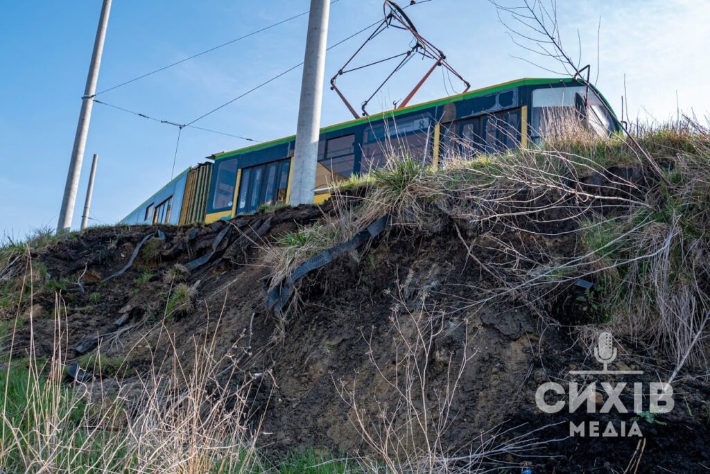Позначки: вулиця Вернадського, грунт, зсув, зупинка, Сихів, трамвай