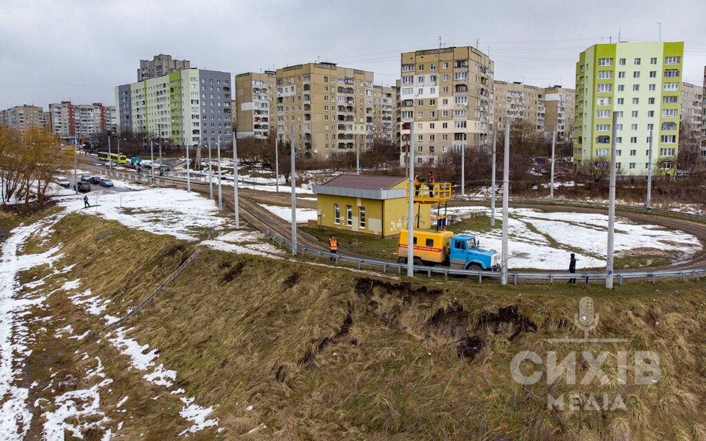 У Львові на вулиці Вернадського, а саме на кінцевій зупинці сихівських трамваїв, вже вдруге за весну 2021 року трапився зсув грунту, попередній відбувся 1 березня.