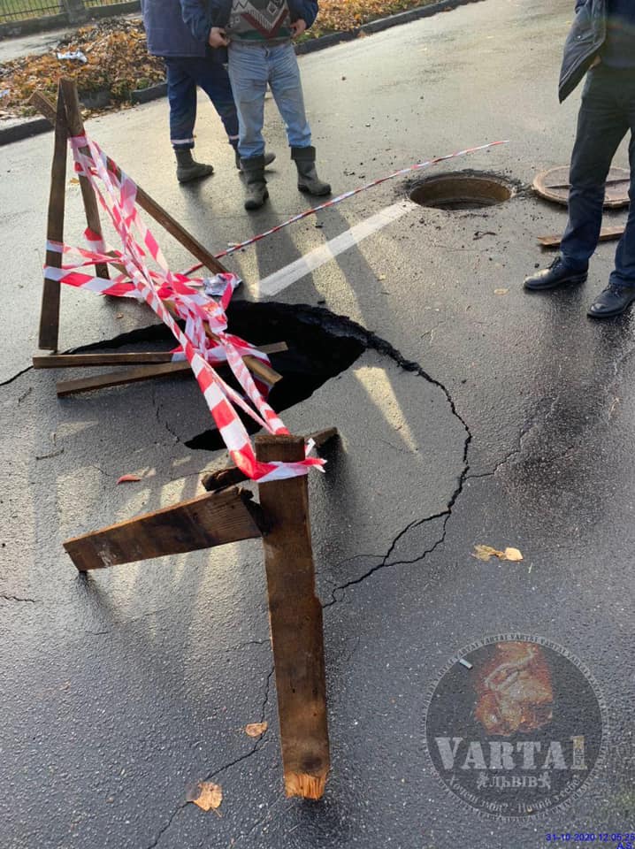 «30.10.2020 о 22:30. На вул. Кульпарківській, 22 – на дорозі з’явилося провалля, тріщина. На місці присутня поліція»,- повідомив Зінкевич, який оприлюднив світлини з місця події.