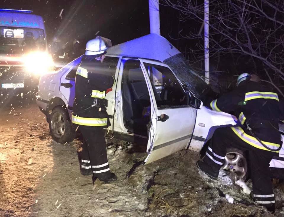 - На Львівщині автомобіль влетів у металеву опору. Фото: ДСНС.
