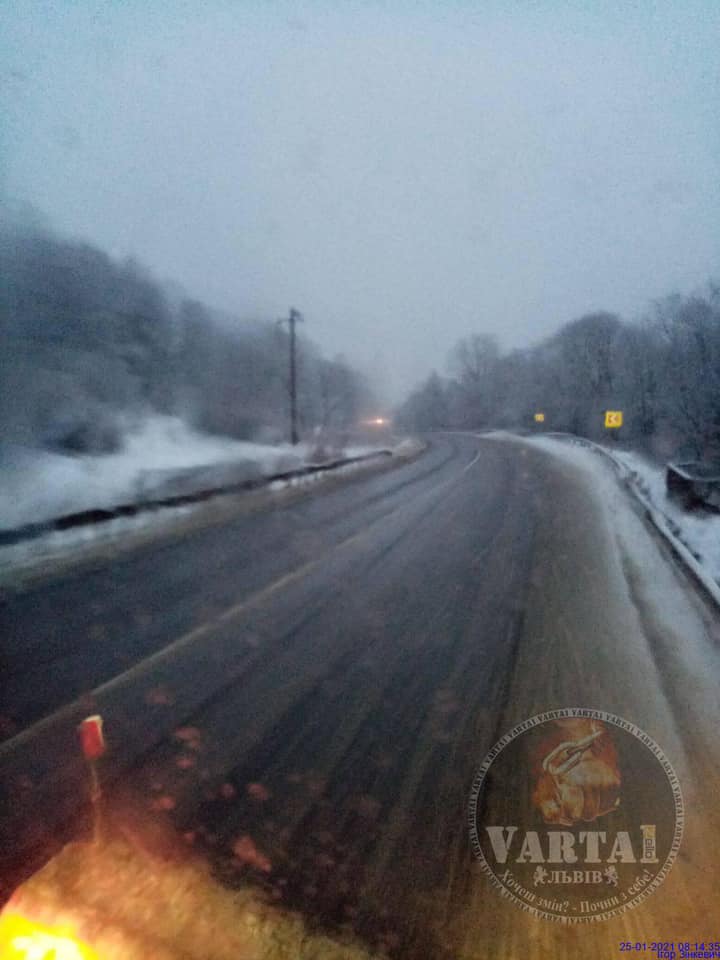 «25.01.2021 о 07:50. Траса Київ-Чоп. Від Стрия в сторону Закарпаття. Сильний Сніг, колія.