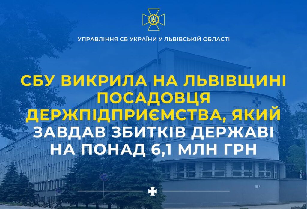 СБУ викрила на Львівщині посадовця держпідприємства, який завдав збитків державі на понад 6,1 млн грн