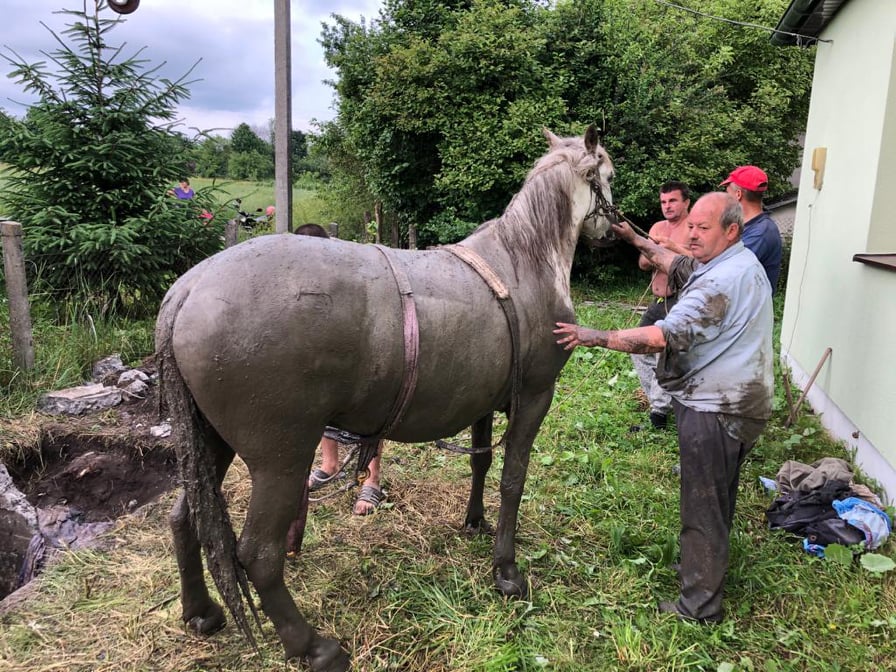 У Бродівському районі рятувальники витягнули коня із стічної ями.
