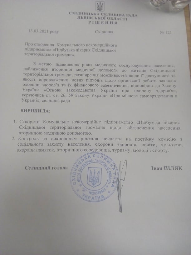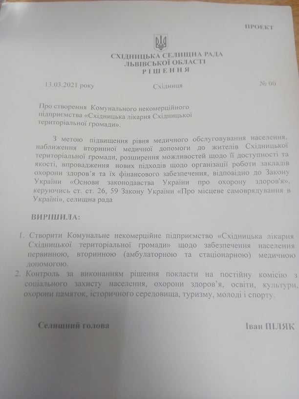 Як повідомляє ВАРТО, 13 березня, у Східницькій громаді відбулася позачергова сесія. Основне питання, яке розглядалося, це утворення в громаді КНП (Комунального некомерційного підприємства), яке б могло укладати угоди з НСЗ (Національна служба здоров’я) та працювати у сфері надання медичних послуг.