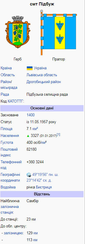 Довідково. Підбуж — селище міського типу (з 1957) у Дрогобицькому районі Львівської області. У селищі діють середня загальноосвітня школа та Мала академія мистецтв, районна лікарня, заводи мінеральних вод «Легенда Карпат» та «Підбузька», база відпочинку «Карпати», геріатричний пансіонат тощо. Є сакральні споруди XVIII-ХІХ стт.
