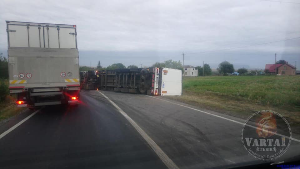 “03.09.2020 о 07:00. Перед підйомом Нові Стрілища перекинулась фура, в сторону Івано-Франківська корок. Поліція на місці”, – зазначається у повідомленні.