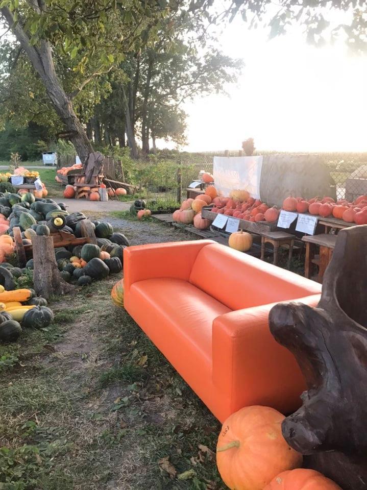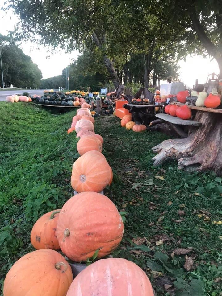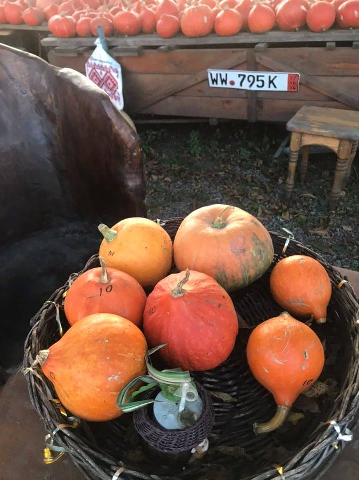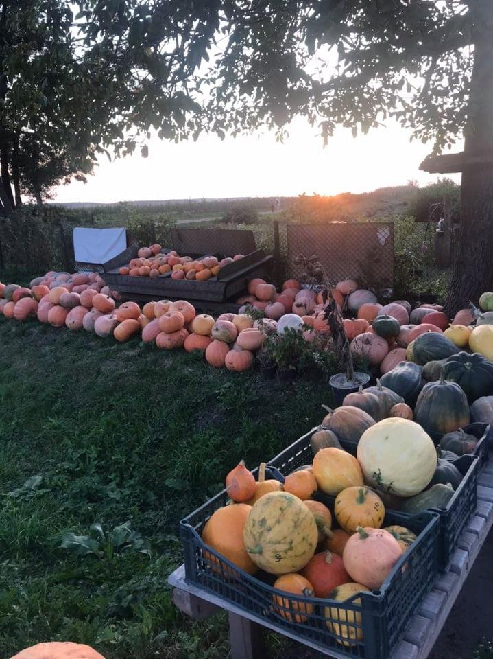 Розпитую садівника про гарбузи. Ну дуже вони у нього гарні! «Вирощуємо їстівні гарбузи, але не для худоби. Такі не вигідно вирощувати. Садимо гарбузи поміж горіхами. Є декоративні гарбузи. Їх беруть для декоративного оформлення ресторанів, кав’ярень. Даємо гарбузи в оренду до Гелловіну — 3 гривні за кілограм. А після свята їх нам повертають».