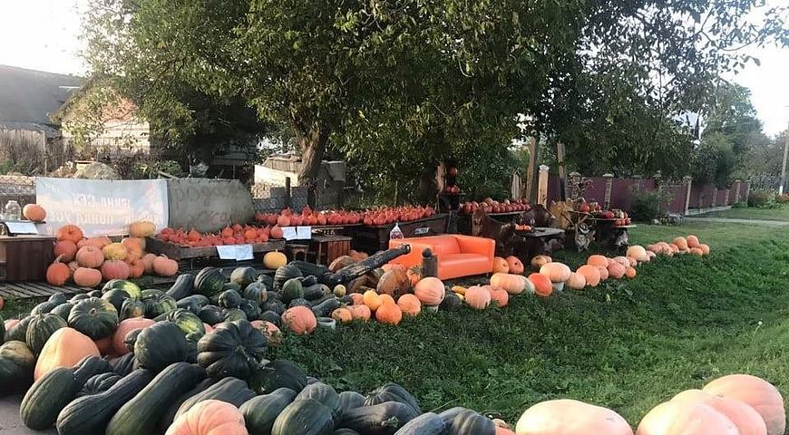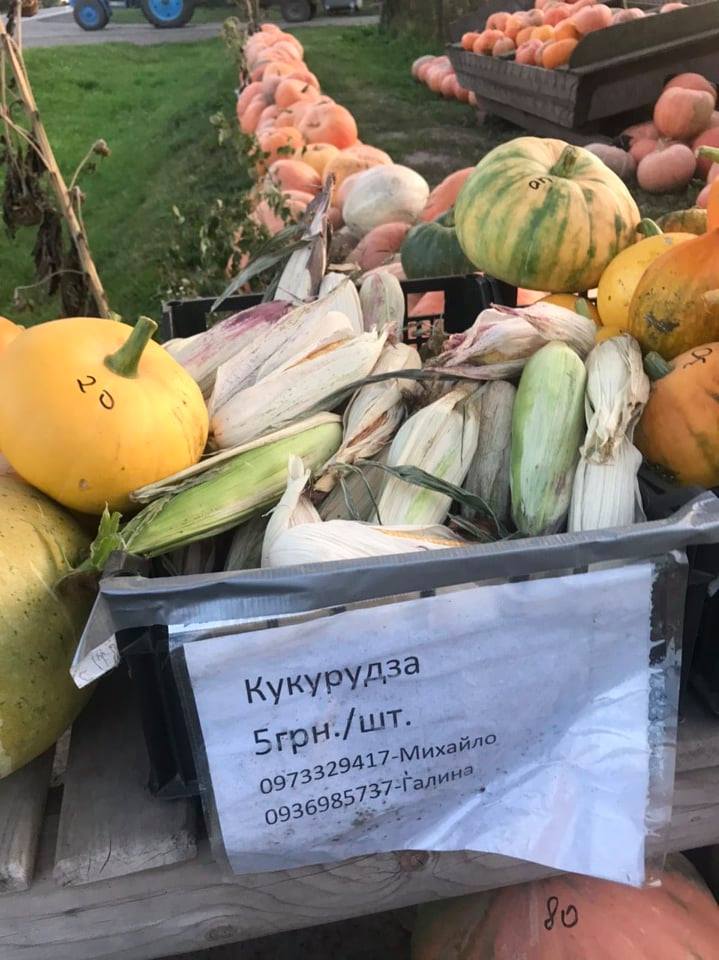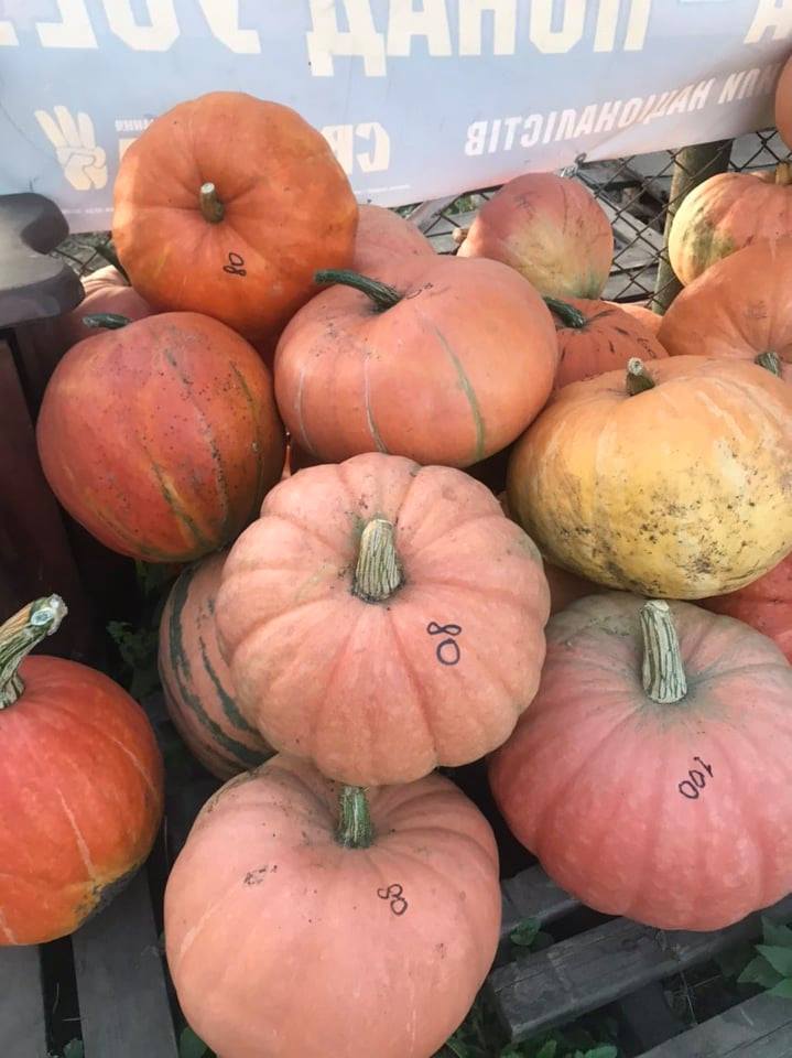 На усіх гарбузах, що виставлені на продаж, є цифра. «Так контролюєте товар?» — цікавлюся. «Це ціна за штуку — від 10 до 300 грн. Вартість залежить від сорту та виду», — каже пан Михайло.