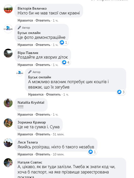 «Шукаємо власника сумочки з грошима. Хтось забув у камері схову, минулого тижня в Красному в магазині “Рукавичка”, – зазначається у дописі на сторінці «Буськ онлайн» у ФБ.