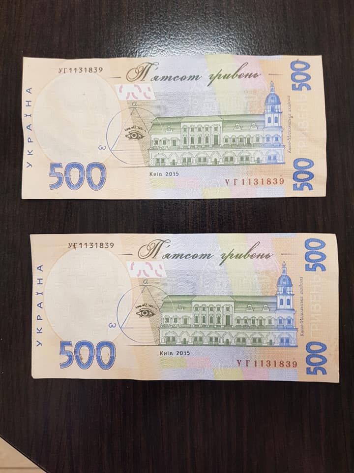 “Будьте уважні! В обіг шахраї закинули значну кількість фальшивих 500 – гривневих підробок. В м.Червоноград виявлено вже декілька таких купюр. Всі мають один і той же номер. Уважно слід придивитись до написів – вони дещо розмазані. Під пальцем однак відчувається певні “рифлені” написи. Є схожість за рахунок також імітації водяних знаків та магнітної стрічки. Однак, під детектором чітко видно “фальш”. Бережіть себе та рідних- поширте інформацію оскільки шахраї можуть розповсюджувати фальшивки і у інших містах”, – зазначається у дописі.