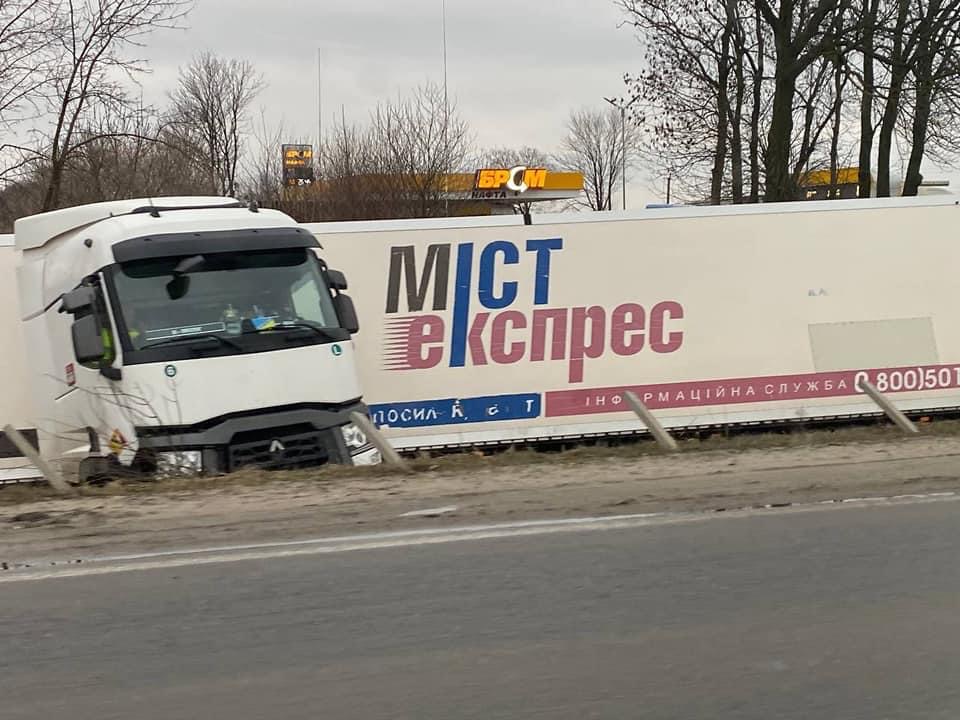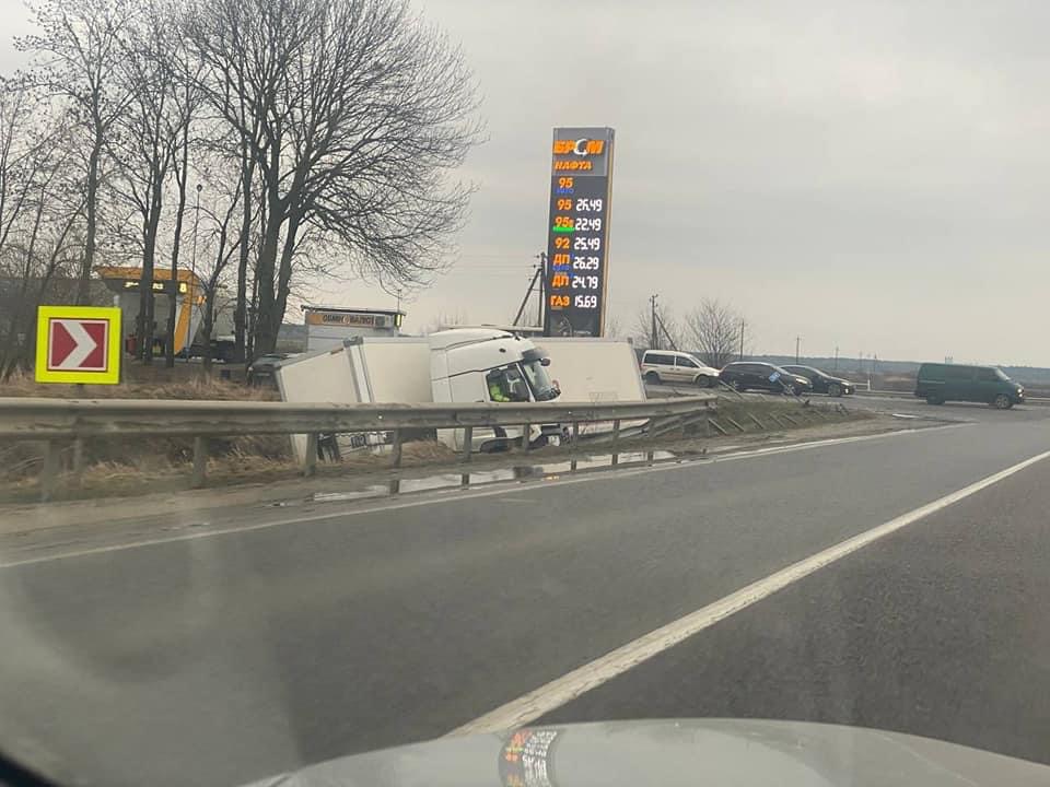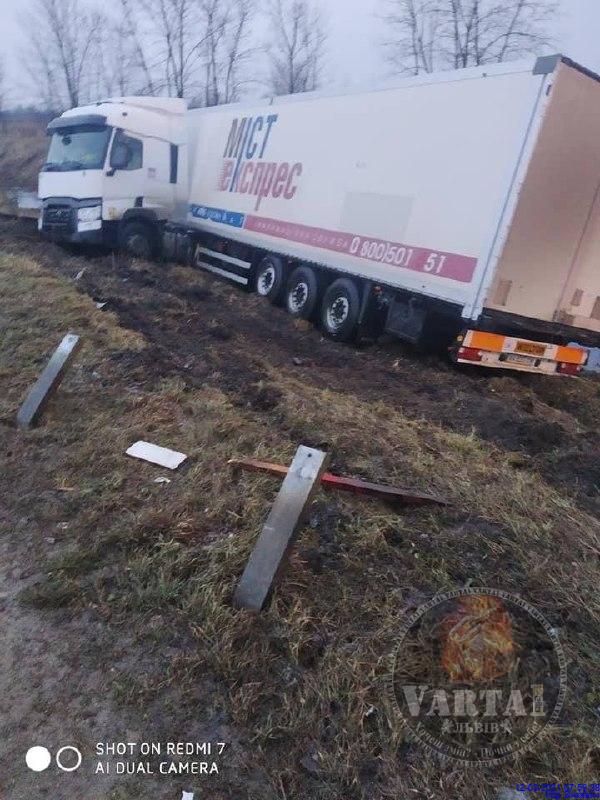 На Львівщині вантажівка злетіла з дороги.