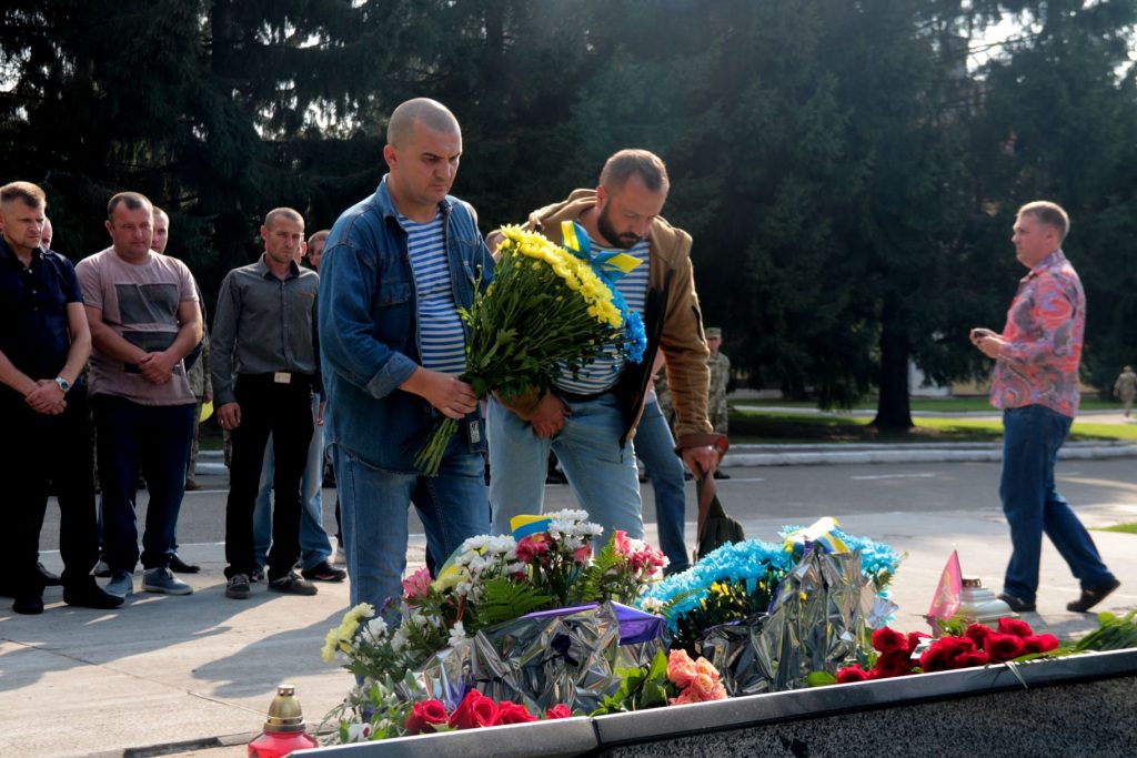 До пам’ятника загиблим десантникам поклали квіти та відслужили панахиду. Новітніх героїв також вшанували хвилиною мовчання.