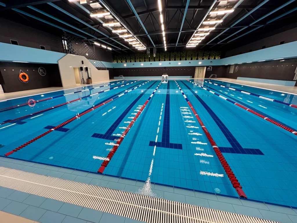 25-метровий басейн на 8 доріжок (глибина 1,40 м, температура 25–27°C);
