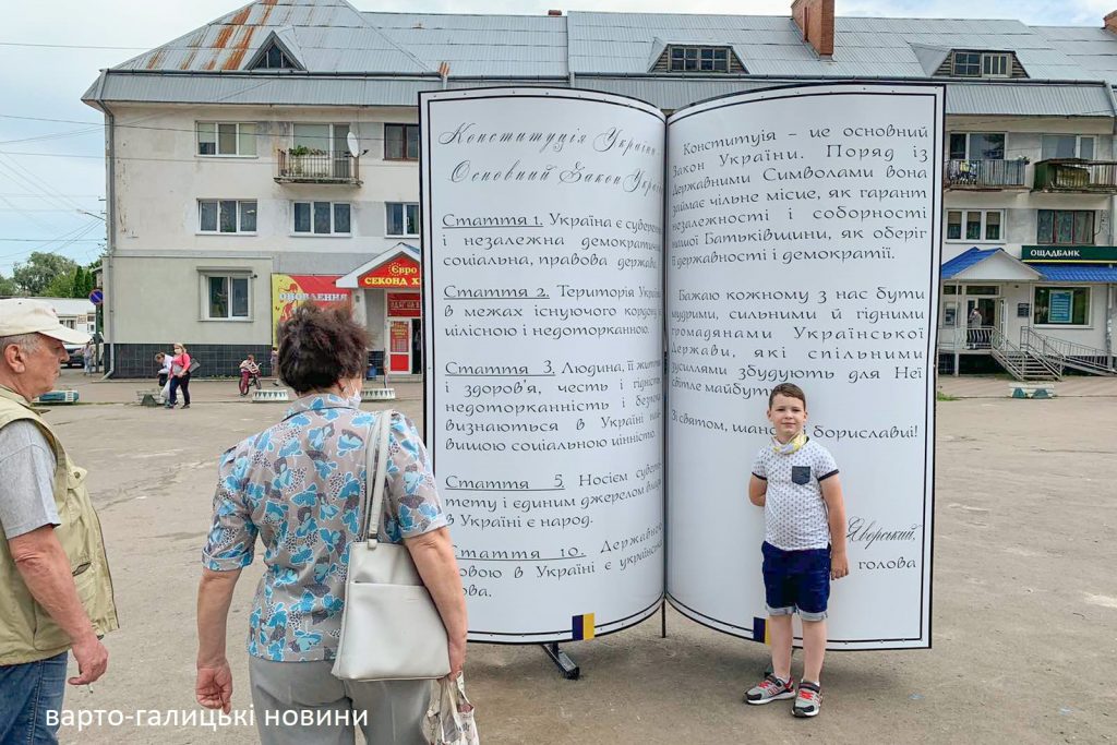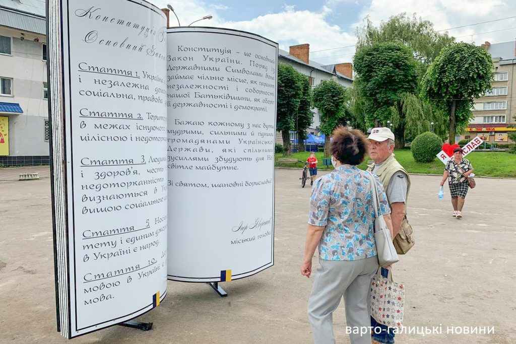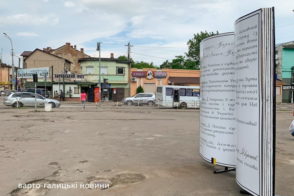 Як пише «Четверта студія», з посиланням на «ВАРТО – Галицькі новини», висота «Основного Закону» два з половиною метри. На розгорнених сторінках розмістили перші статті Конституції та вітальне слово міського голови Ігоря Яворського. Невдовзі постамент ще прикрасять національною символікою.