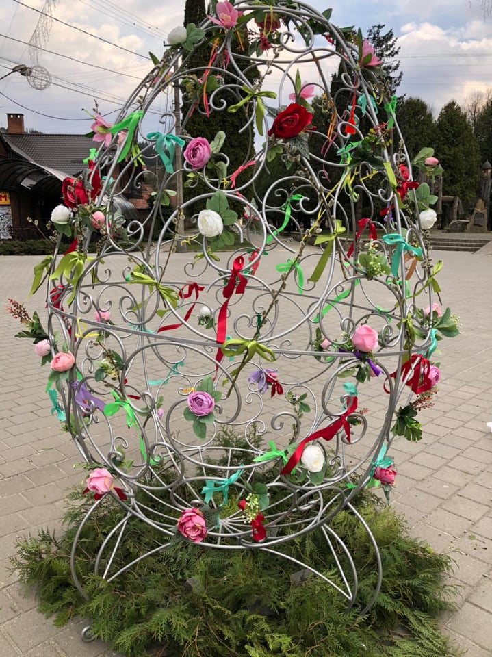 Тож за кошти селищної ради місцевий майстер Олександр Давидюк викував металеве яйце висотою 2,5 м, яке в діаметрі сягає 1,5 м. Декорували диво-писанку директор народного дому Людмила Яромій і місцева активістка, художниця Оксана Мізунська. Цьогоріч писанку прикрасили різнобарвними стрічками, яскравими квітами та гілочками верби.
