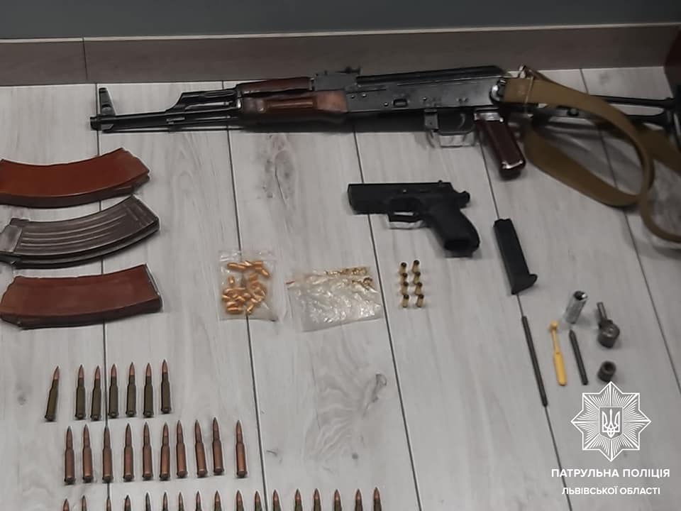Зі згоди жінки, патрульні разом зі слідчо-оперативною групою відділу поліції N°6 Львівського районного управління поліції, зайшли до помешкання. Там вони виявили травматичний пістолет Форт 17Р та карабін Форт 201. У сейфі лежали ніж, оптичний приціл, три магазини до карабіна, набір для виготовлення патронів, гумові патрони — 8 штук та 49 набоїв різного калібру і ще 25 куль та 48 капсул.