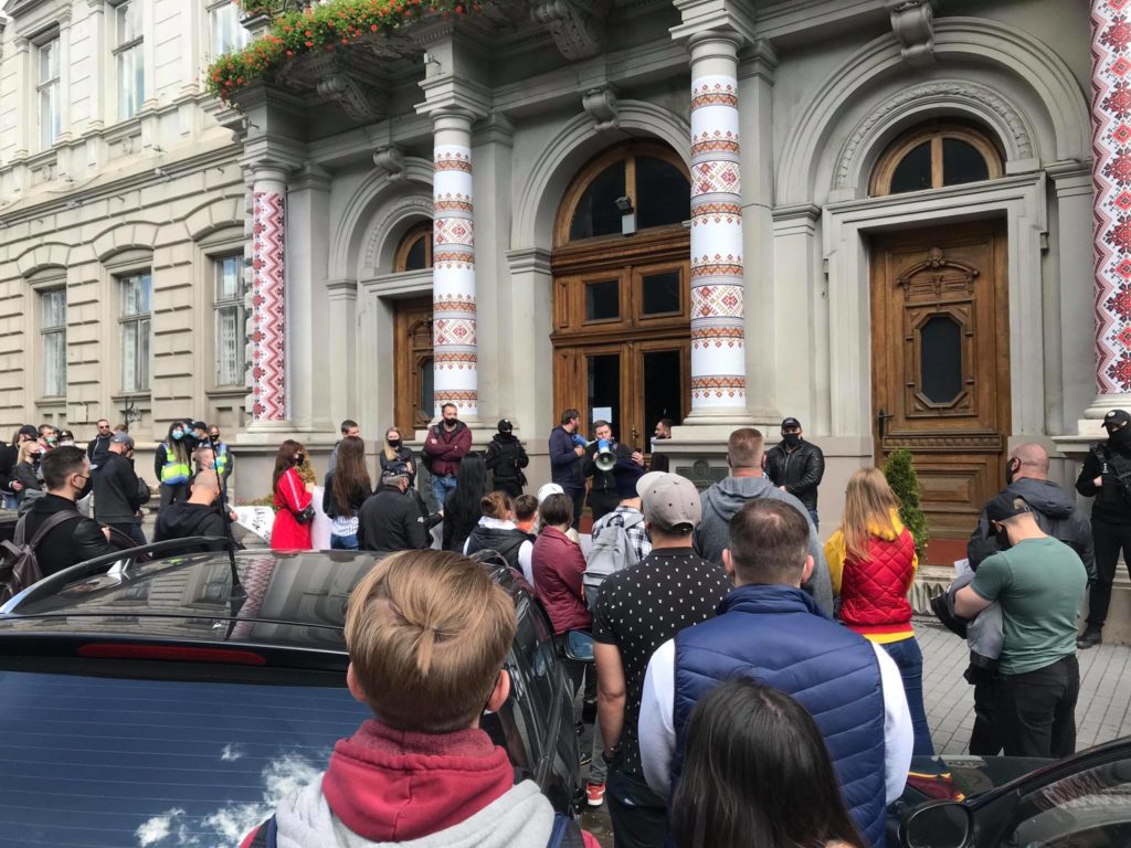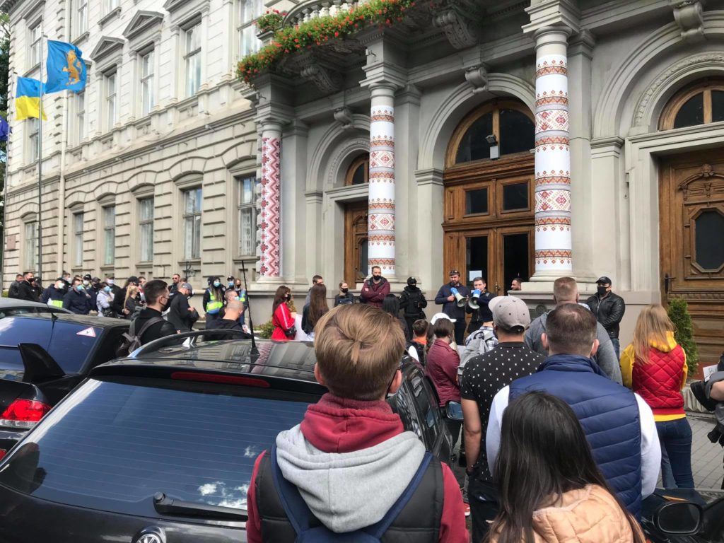 Під стінами Львівської обласної державної адміністрації десятки людей вимагають послабити карантинні заходи на Львівщині.