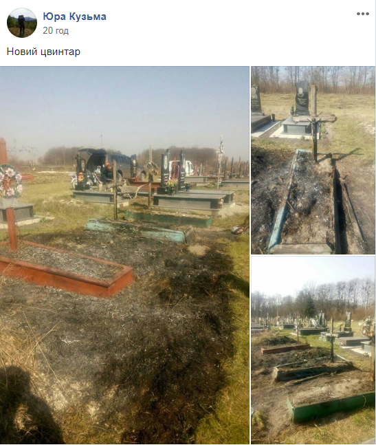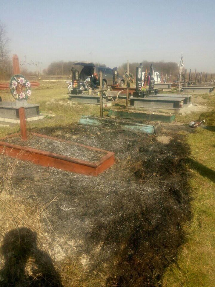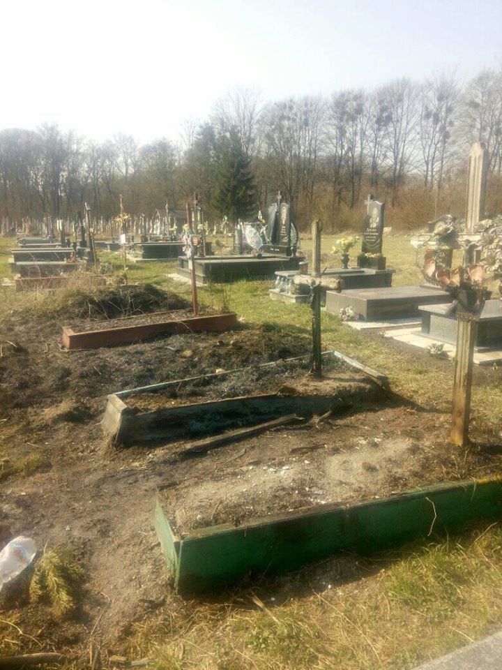 Як наслідок, згоріла трава та обгоріли дерев’яні надгробки.