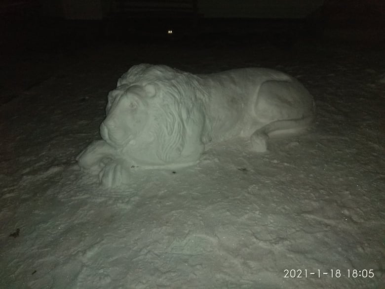 Ось таких чудових снігових левів створив наш земляк зі Стрільбич Volodymyr Dochych.