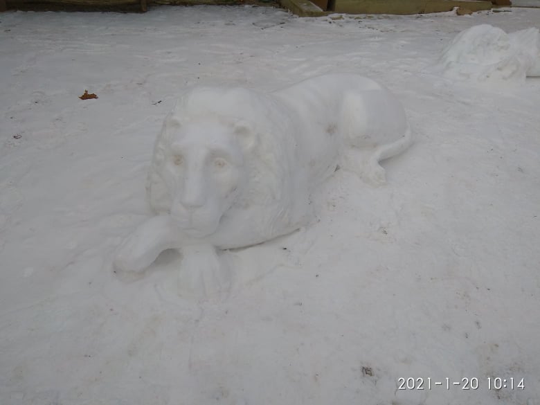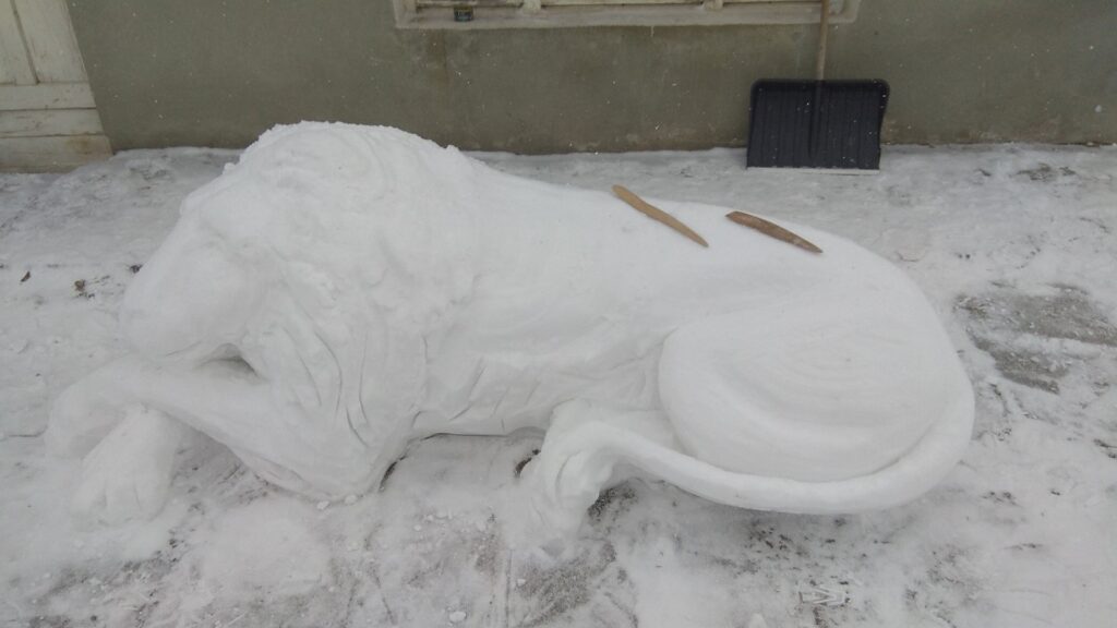 Позначки: лев, скульптура, сніг, сніговик