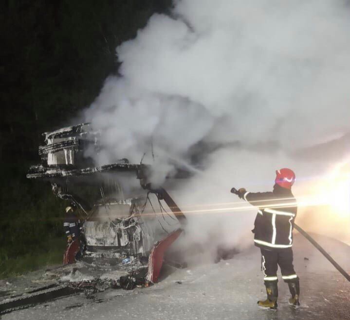Пожежа спалахнула під час руху автомобіля з лафетою дорогою Львів-Краковець