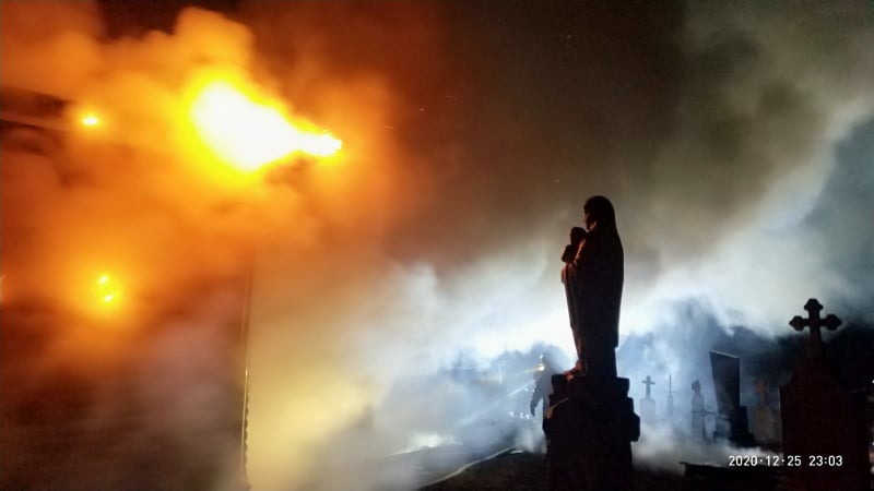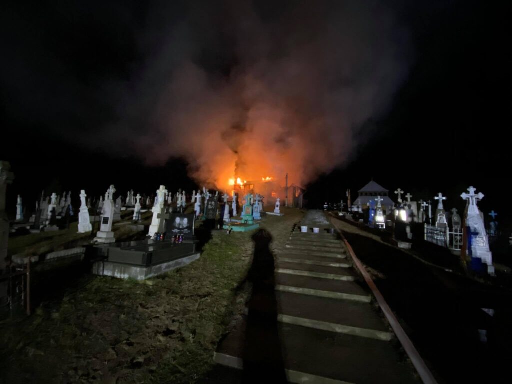 У Радехівському районі на Львівщині, вогонь знищив дерев’яну церкву.