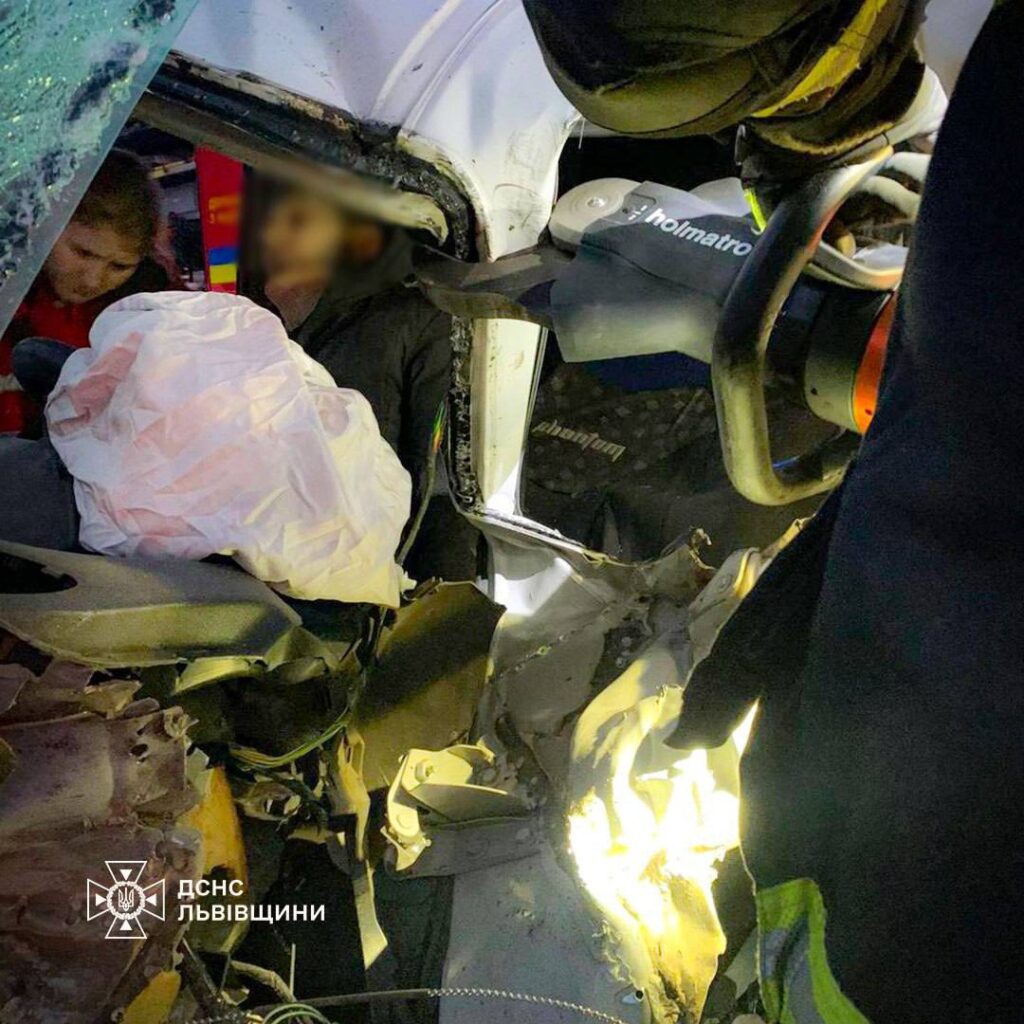 35-річного водія легкового авто затисло в понівеченому автомобілі. Рятувальники за допомогою гідравлічного інструменту деблокували чоловіка та передали медикам