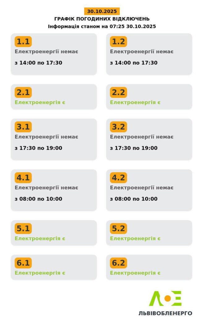 Позначки: відключення світла, ПрАТ "Львівобленерго", світло