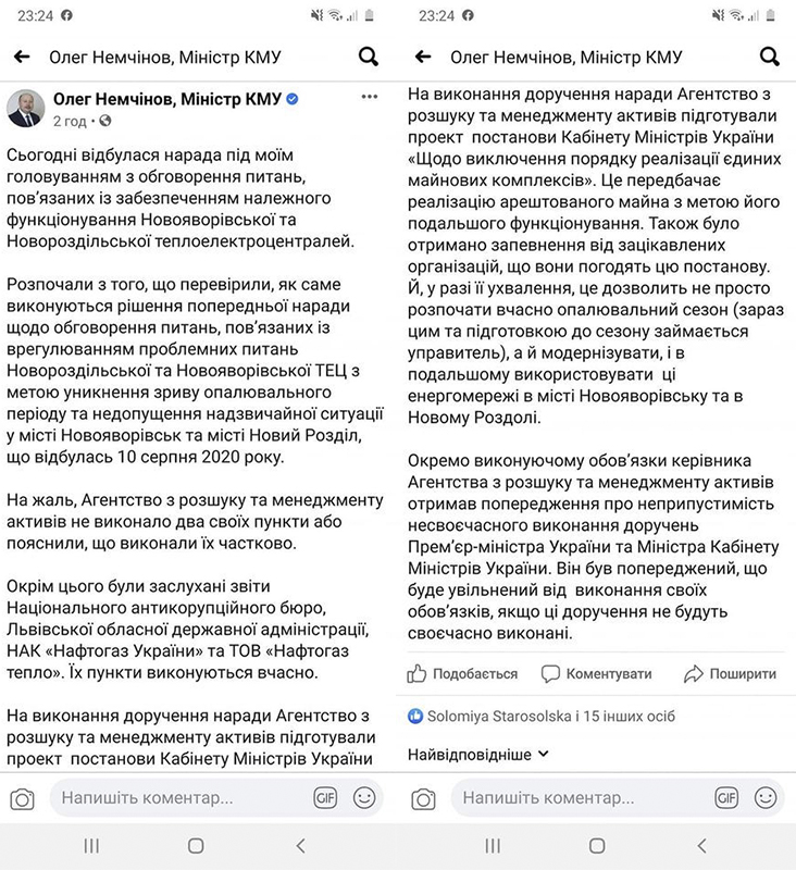 І якщо громадяни інших держав знаглядової ради “Нафтогазу” не забов’язані бути патріотами України, то про пана Немчінова це свідчить дуже красномовно. Міністр Кабінету Міністрів, який є географом за освітою та в компетенцію якого згідно його посадових обов’язків не входить вирішення питань енергетики та ЖКГ, який не має досвіду в енергетиці та керуванні ТЕЦ, чомусь вважає себе компетентним погрожувати співробітникам АРМА, завуальовано тиснути на суди, та фактично, ігнорувати положення законів держави, в якій він і працює.