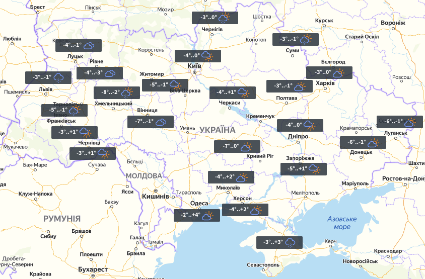 У Львові в суботу вночі -3°, вдень 0°, хмарно з проясненнями. У неділю вночі -3°, вдень -1°, очікується сніг.