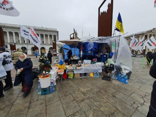 Кілька десятків підприємців продовжують акцію протесту на Майдані Незалежності в центрі Києва.