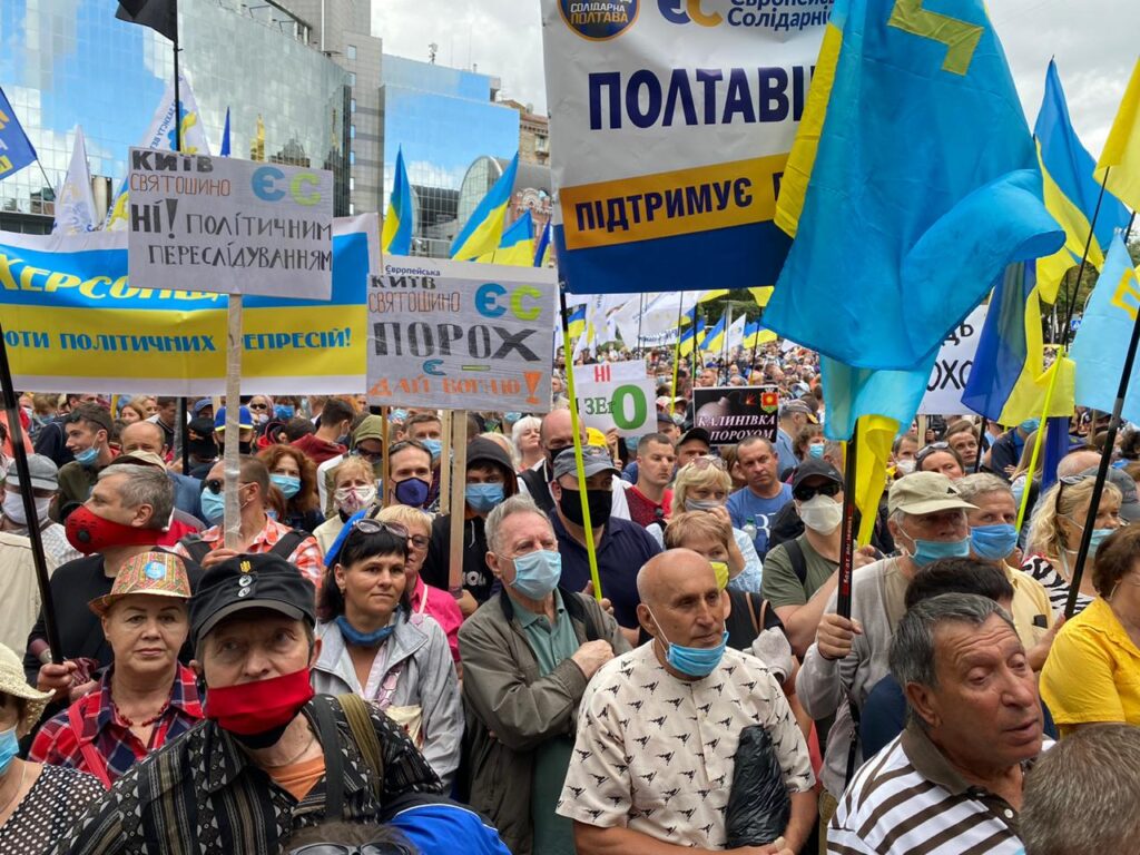 10 тисяч людей зібралися під стінами Печерського суду проти політичних репресій на підтримку Петра Порошенка. Учасники мітингу – активісти, волонтери, представники місцевого самоврядування, народні депутати, громадські діячі – у своїх виступах наголосили, що вони не просто підтримують п’ятого Президента Петра Порошенка – вони захищають державність, свободу і європейський вибір. Бо політичні переслідування є неприпустимими в демократичній Україні.