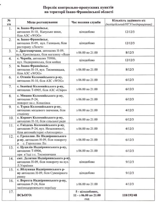 - Перелік блокпостів на Івано-Франківщині