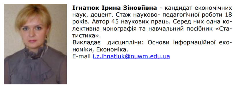 - Профіль Ірини Ігнатюк на сайті НУВГП (фото: скрін nuwm.edu.ua)