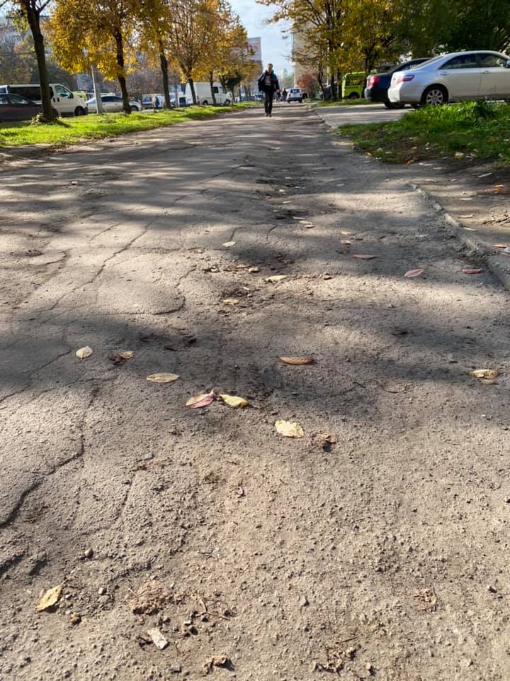 “Пішохідна зона від ТЦ “Сихів” до готелю “Соната” вздовж вулиці Сихівська, 2 і 4 потребує ремонту. Поки ще сухо, то можливо ходити, але як тільки почнуться дощі то там буде суцільне болото.”