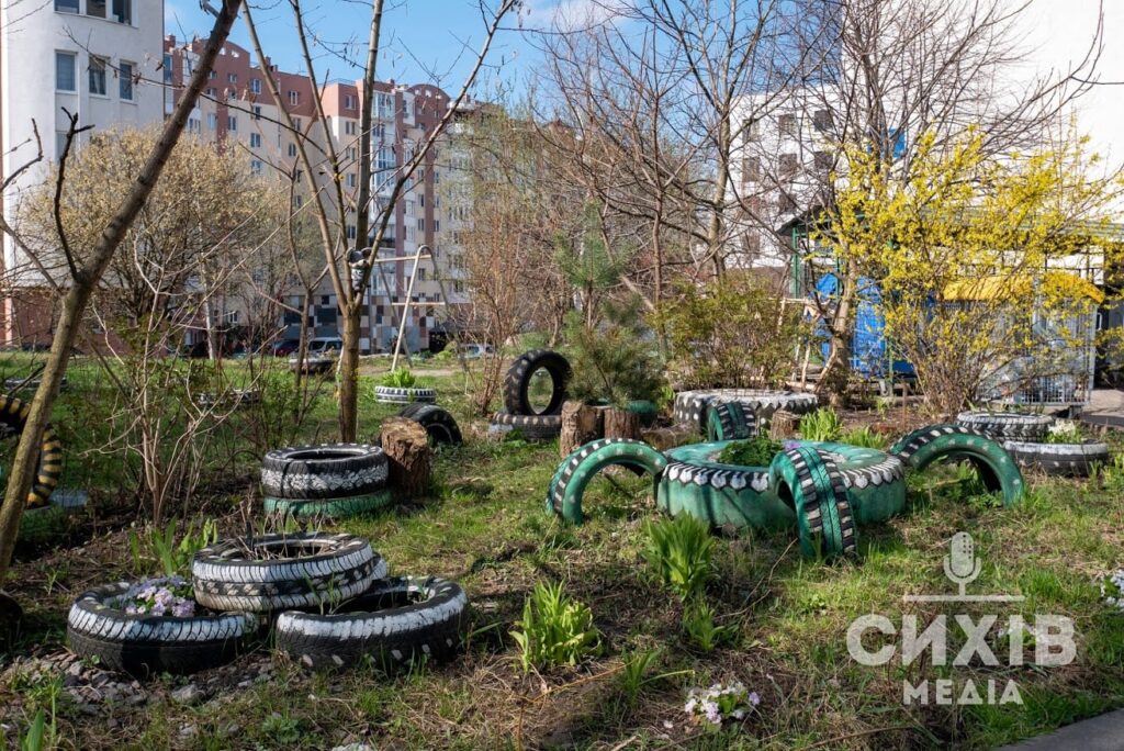 Позначки: клумба, прибудинкова територія, Сихів, творчість