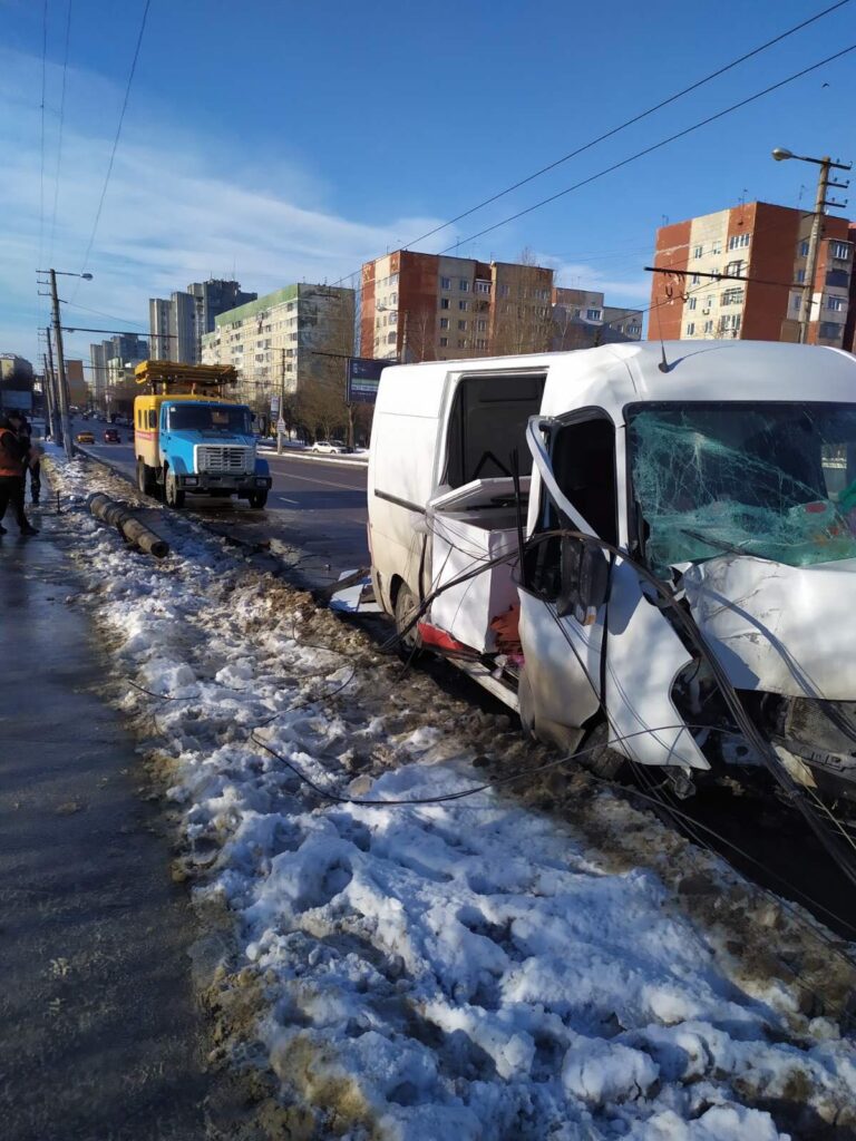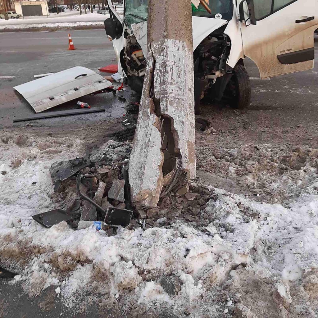 У Львові водій мікроавтобуса в’їхав у стовп електроопори.