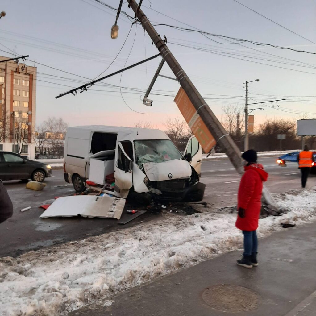 Позначки: дтп, електрична опора, львівелектротранс, мікроавтобус, Сихів