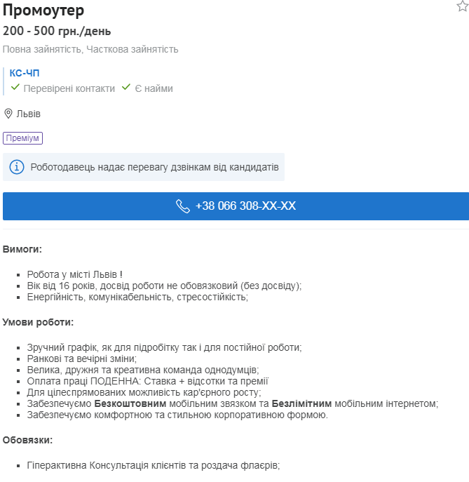 Як пише «Четверта студія», з початку вересня 2020 року, у соцмережах з’явилася велика кількість оголошень з пропозицією роботи промоутером, зокрема, і у місті Львові. Серед вимог до претендентів зазначається: