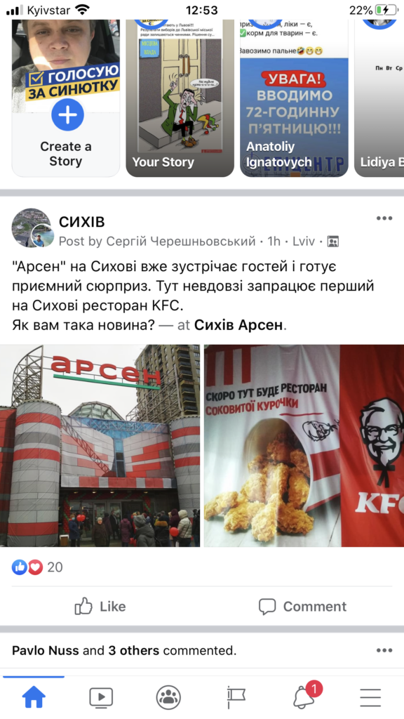 “Тут невдовзі запрацює перший на Сихові ресторан KFC”, – йдеться у повідомленні.