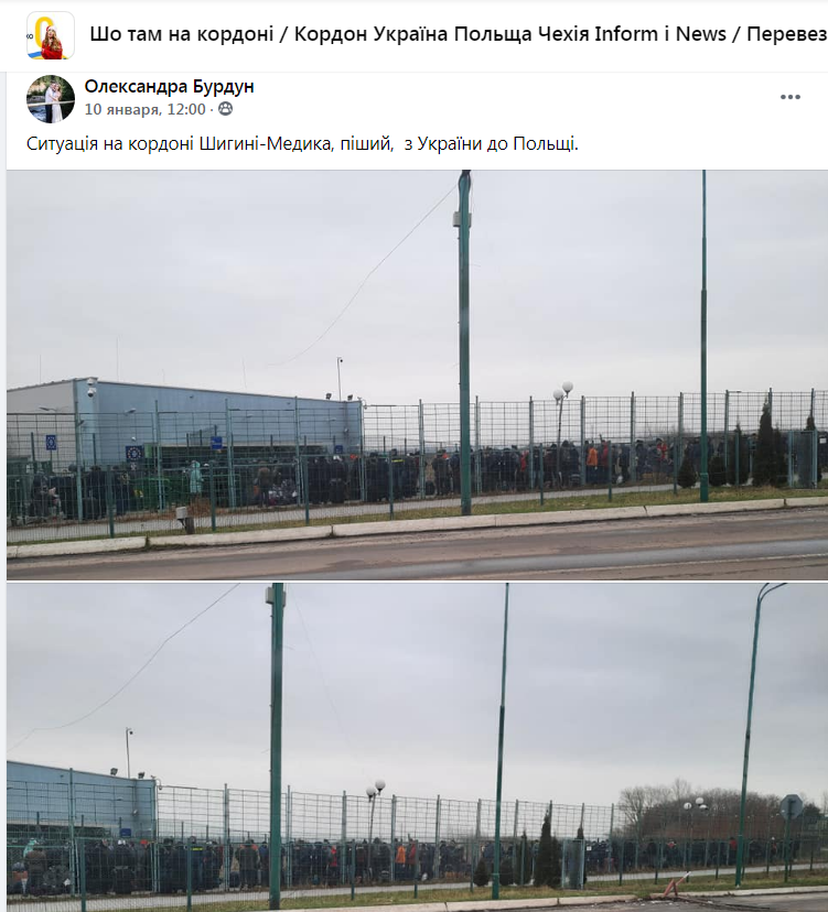«Ситуація на кордоні Шегині – Медика, піший, з України до Польщі», – написала на сторінці спільноти «Шо там на кордоні» у ФБ Олександра Бурдун, яка оприлюднила світлини з місця події.