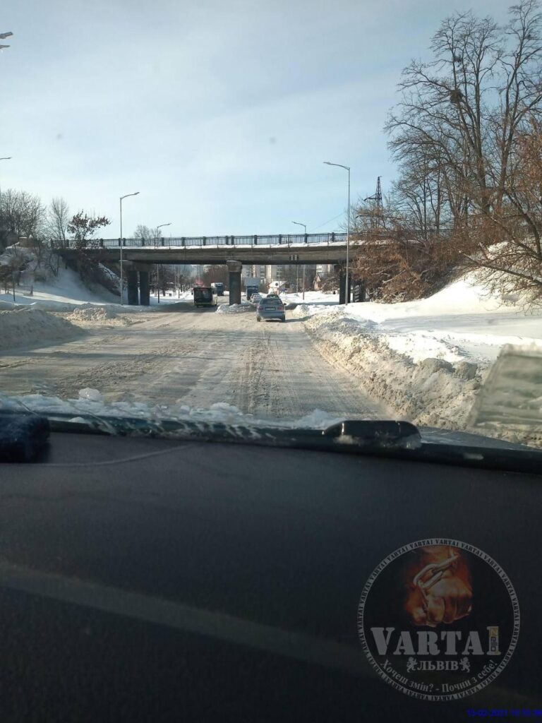 На в’їзді до Львова на Галицькому перехресті утворилась льодова гребінка.
