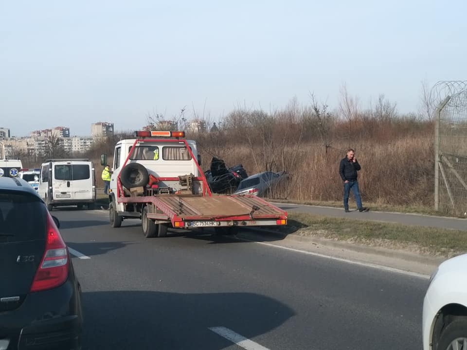 - На в’їзді до Львова у кювет злетіли два автомобілі, фото Варта-1