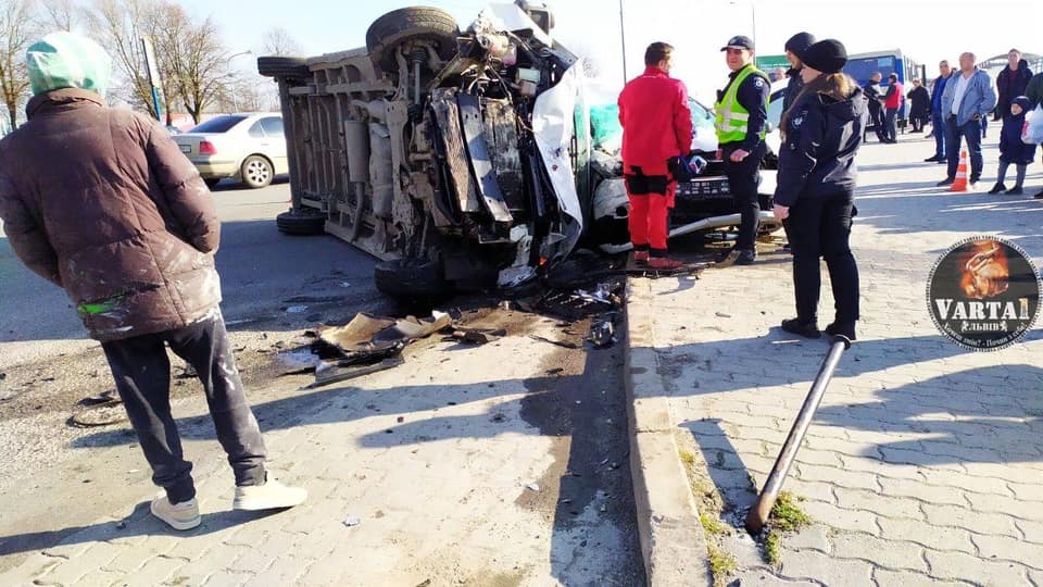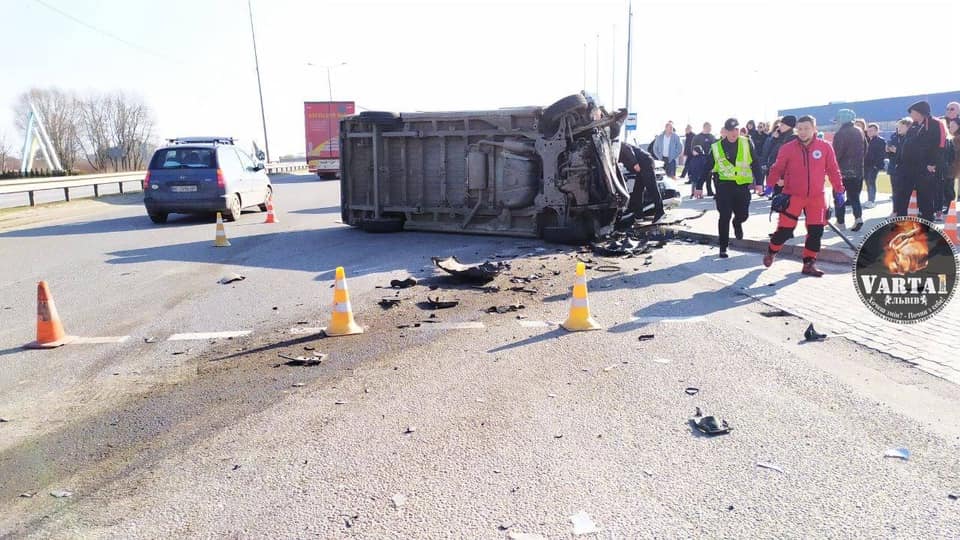 - На виїзді зі Львова перекинувся автомобіль, двох водіїв госпіталізували, фото Варта-1