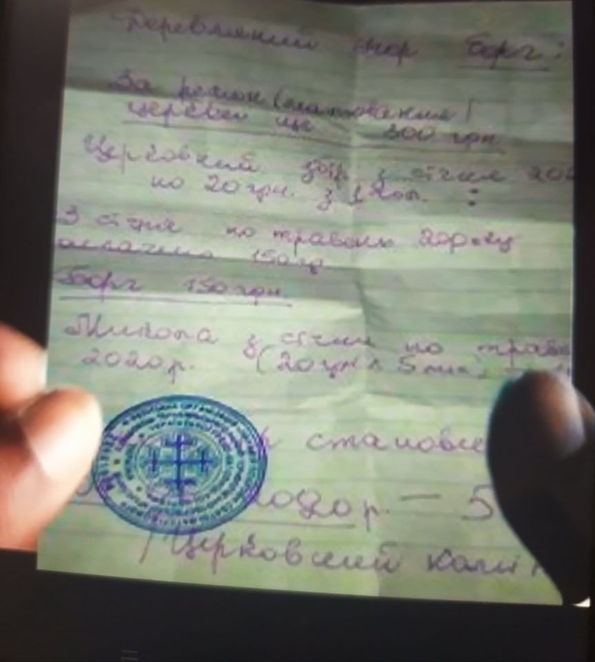 Як повідомила в Facebook-групі Великогаївської об’єднаної територіальної громади користувач Наталя Дерев’яна, їй видали на касі в храмі розписку про борги.